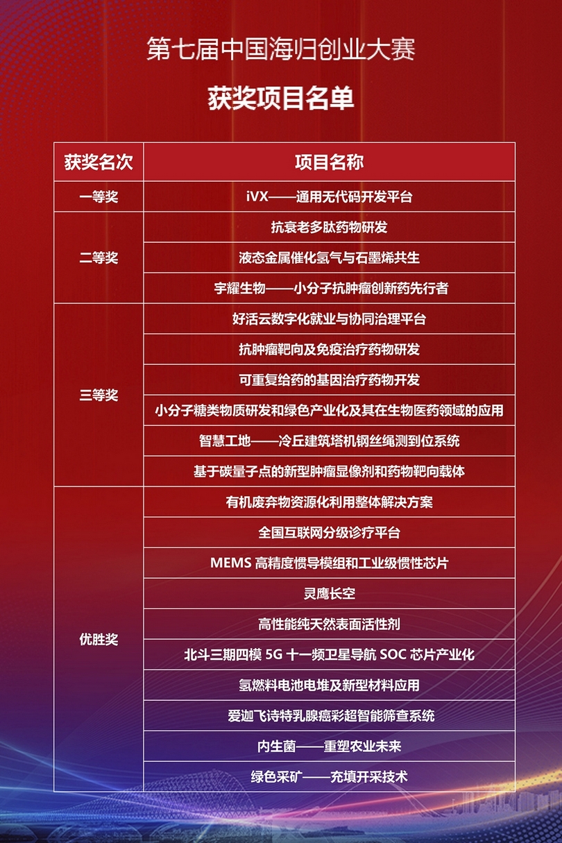 2021(第七屆)中國海歸創業大賽深入學習貫徹習近平總書記重要講話精神和黨的十九屆五中全會決策部署,圍繞“十四五”規劃和二〇三五年遠景目標,集聚更多創新要素,打造開放合作平臺,更好發揮資源互通和創新協同作用,在資源整合、需求對接、服務支持等方面進一步探索加強。本屆大賽自7月正式啟動以來,得到了廣大海歸創業企業和團隊的熱情參與。到報名截止,共有601個海歸創業項目通過資格審查入圍初賽,經對項目開展實地調研和組織專家進行評審,共遴選出112個項目入圍復賽。復賽、決賽及對接洽談活動原定于2021年10月下旬在北京昌平未來科學城舉辦,因受國內新冠肺炎疫情反彈影響而延期??紤]到目前各地疫情防控工作仍處于鞏固階段,本屆大賽復賽、決賽最終決定采用在線方式舉行。2022年6月27日至30日,由中國技術創業協會留學人員創業園聯盟和北京市昌平區人民政府共同主辦的第七屆中國海歸創業大賽復賽、決賽在線成功舉辦。