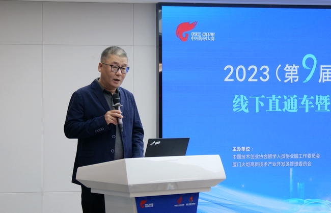 5月22日,2023(第九屆)中國海歸創業大賽線下直通車暨“海創中國”導師行(廈門站)在廈門留學人員創業園圓滿舉辦?;顒佑芍袊夹g創業協會留學人員創業園工作委員會、廈門火炬高技術產業開發區管理委員會共同主辦,廈門高新技術創業中心有限公司(廈門留學人員創業園)、廈門高新科創天使創業投資有限公司、火炬高新區海內外高層次人才創業服務驛站承辦。中國技術創業協會副理事長、留學人員創業園工作委員會專職副會長兼秘書長郎靖,留創園工委會副秘書長胡頌華,廈門高新技術創業中心有限公司總經理鄭鞏固等相關單位負責人及5位評委導師出席活動。